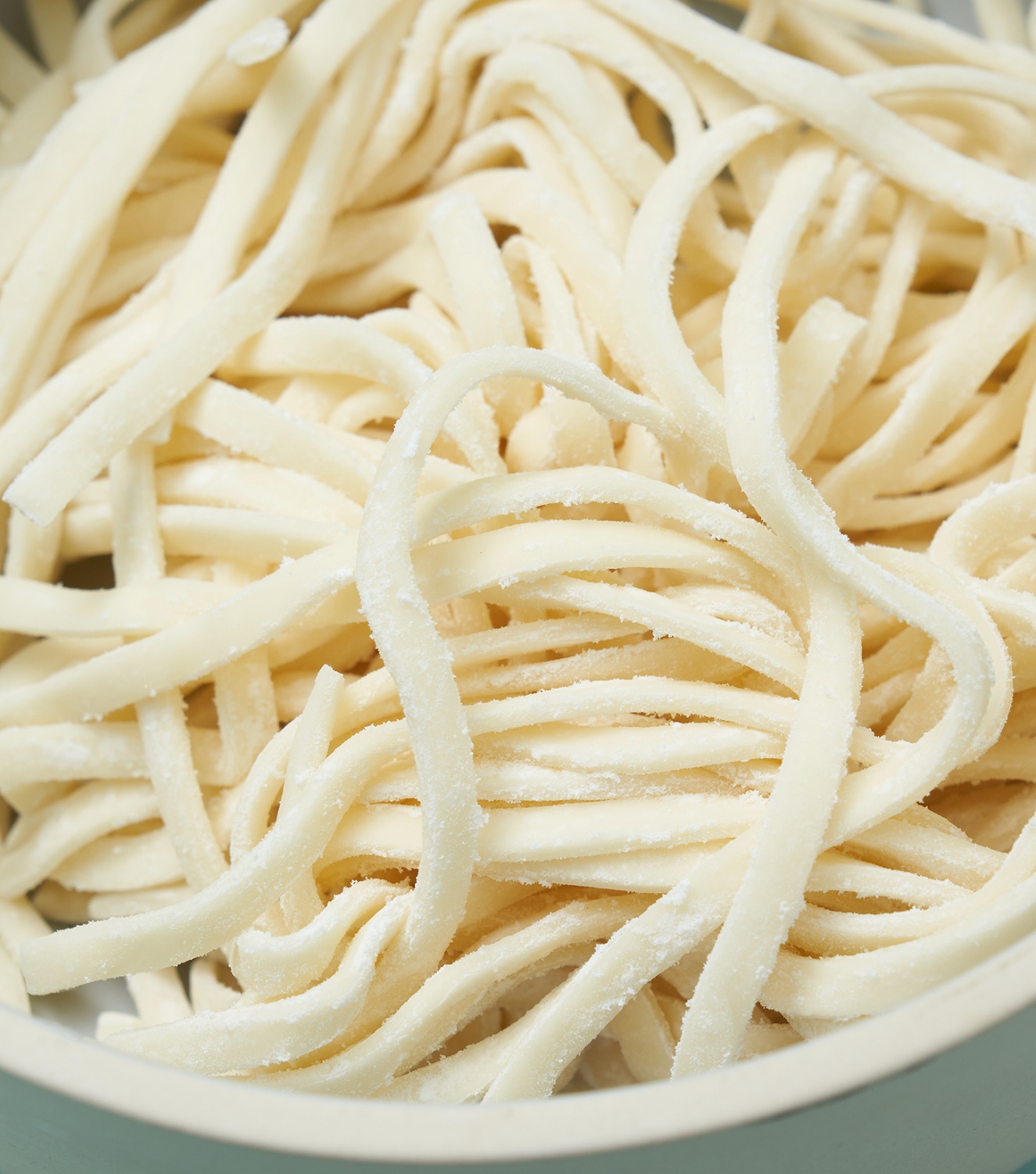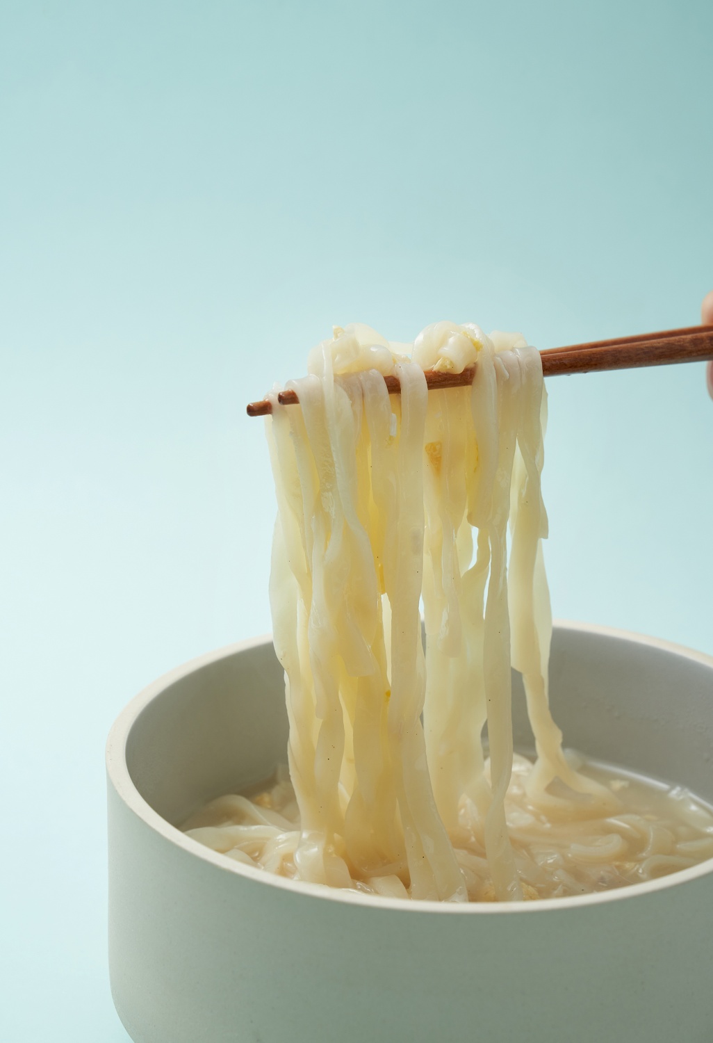 이런 기분을 만들기 위해서는 대량 생산에서 해낼 수 있는 스케일이 도움이 된다. 집에서 반죽을 만들어 칼국수나 수제비를 만들 때 반죽이 덜 되면 반죽이 채 되지 못한 밀가루가 씹히곤 한다. 그런 일이 생기지 않기 위해 반죽을 많이 한다. 생칼국수는 쫄깃함과 탄력 등을 강조하고자 반죽을 수차례 치대고, 밀고, 자르는 과정을 기계가 수행한다. 집에서 칼국수를 만들 때 하는 방법과 기법적으로 차이가 없다. 거기에 더 강한 힘과 더 높은 안정성이 붙는 게 풀무원 면이다. 집에서 반죽부터 면을 썰어보기까지 한 사람이라면 이 편리함을 온몸으로 이해할 것이다.