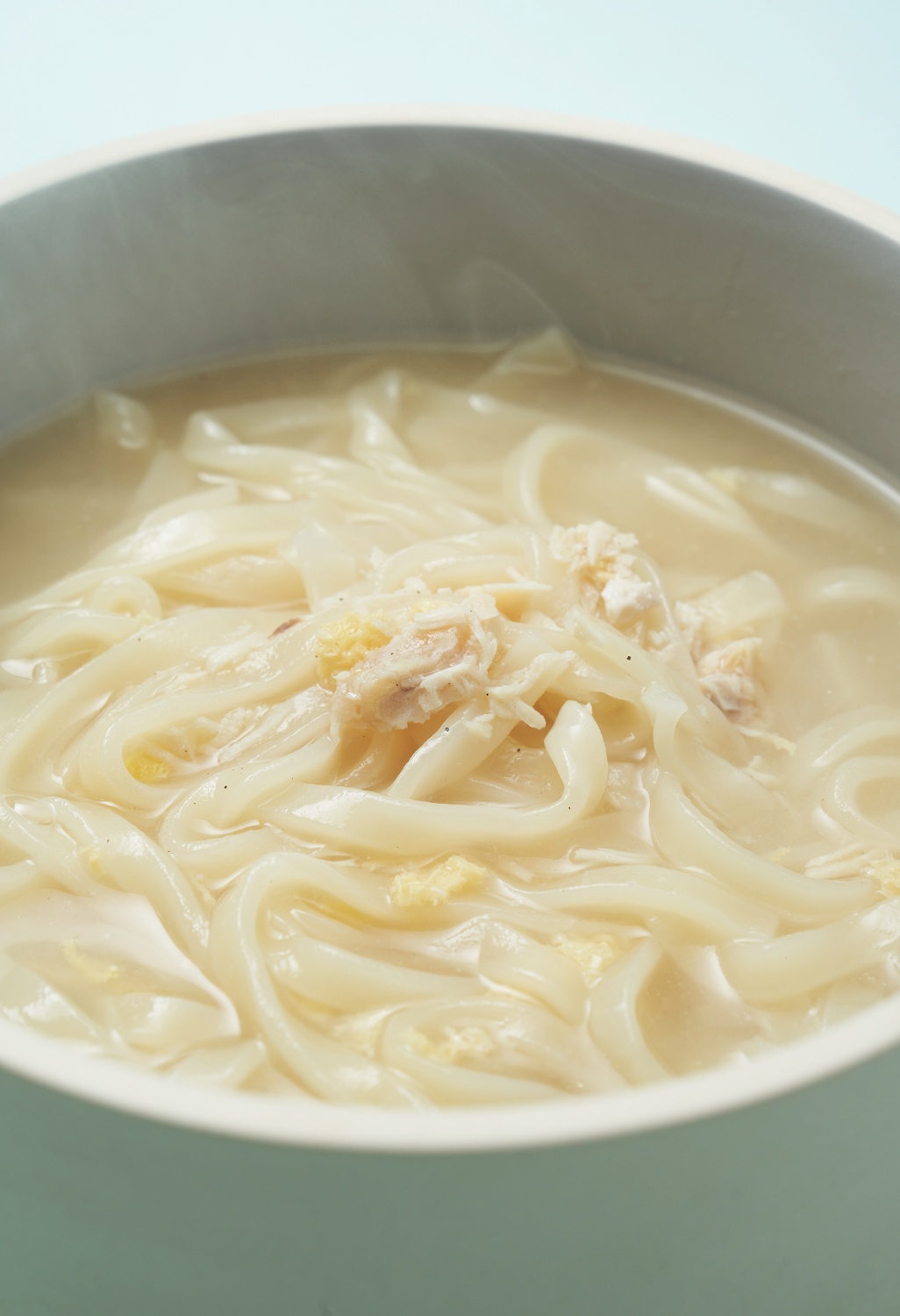 풀무원의 올겨울 신제품 수타식 닭칼국수는 좋은 의미의 '아는 맛'이다. 쫄깃한 수타식 칼국수면, 농후한 닭 육수, 풍성한 건더기. 그 결과 비유하자면 닭한마리집 후식 칼국수 느낌이다. 유명 닭한마리집에서 칼국수면을 추가하면 실제 생면 혹은 말린 생면에 가까운 면을 준다. 육수는 오랜 시간 끓여 닭과 채소 등의 맛이 잘 배어든 천연 치킨 스톡 닭국물이다. 거기에 쫄깃한 면을 넣어 익히면 생면의 풍미가 두드러지고 국물 역시 기분 좋게 진득해진다. 한 입 뜨면 뱃속이 따뜻해지는 기분이 든다.