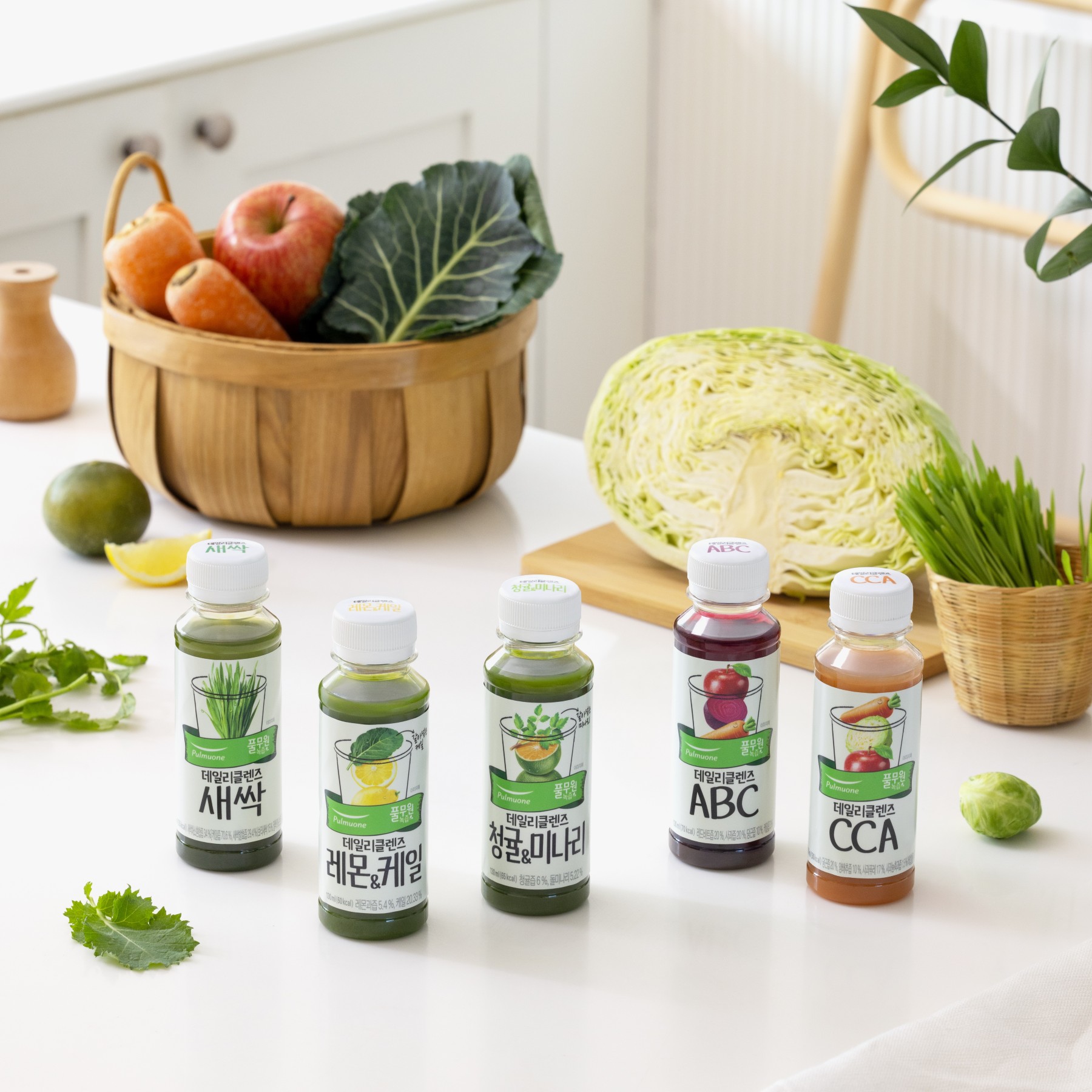 풀무원녹즙은 클렌즈 습관 형성을 원하는 소비자가 늘어나는 것에 맞춰 2023년과 2024년 각각 ‘데일리클렌즈 ABC’, ‘데일리클렌즈 CCA’를 선보였다. 두 제품 모두 하루 한 병으로 간편하게 건강 관리를 할 수 있고, 비가열 공정 생산으로 원물 고유의 맛을 살렸다는 점에서 많은 고객들에게 호응을 얻었다.